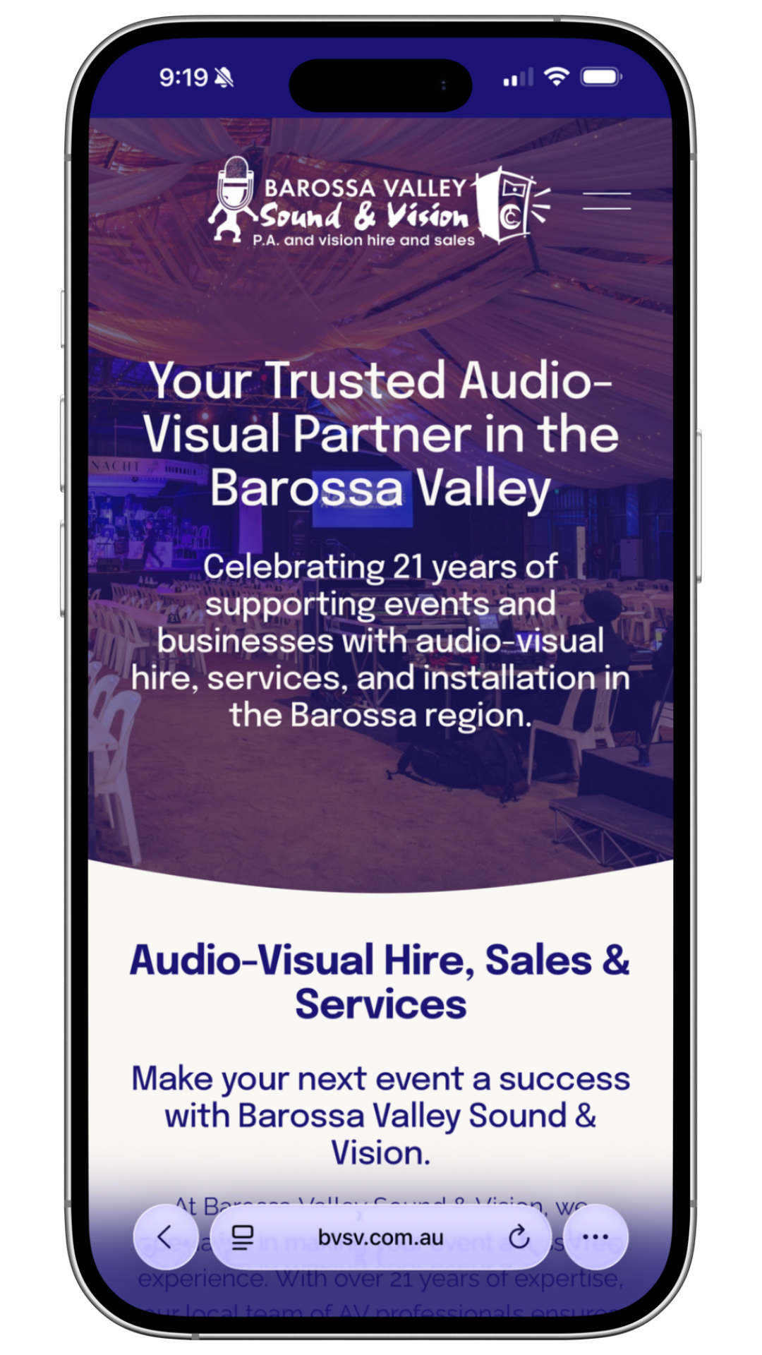 Barossa Valley Sound & Vision now has a clear, confident digital presence that reflects the quality of their work and makes it easy for clients to understand what they offer.